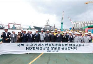 [뉴스웍스=원성훈 기자] 국회 기후에너지환경노동위원회는 21일 울산 동구 HD현대중공업을 방문해 조선·방위산업 현장을 시찰하고, 산업안전 강화 방안 등을 함께 논의했다. 이날 현장시찰은 안호영 위원장, 김주영 간사, 김형동 간사, 김태선 의원을 비롯해 여야 의원과 보좌진, 국회 사무처 직원 등 50여 명이 참석한 가운데 열렸다.국회 기후위원회는 HD현대중공업 본관에서 주요 사업 현황을 보고받은 뒤 특수선사업부로 이동해 함정 제작 공정과 안전관리 체계를 직접 점검했다. 이어 도크와 조립공장을 둘러보며 산업 현장의 작업환경과 안전관리