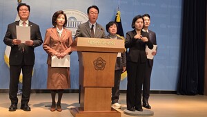 [뉴스웍스=원성훈 기자] 곽규택 의원을 비롯한 국민의힘 법제사법위원회(법사위) 위원들은 13일 "이재명 대통령 공소취소, 법으로 원천 차단하겠다"고 강조했다. 이들은 지난 12일 검사가 이미 기소한 사건에 대해 임의로 공소를 취소할 수 없도록 하는 내용 등의 형사소송법 개정안을 발의하기도 했다. 이들은 13일 국회소통관 기자회견에서 "현행 '공소 취소 제도'는 명백한 증거 오류나 절차상 중대한 하자가 확인된 극히 예외적인 상황에서만 가능하도록 마련된 장치"라며 "그러나 현실에서는 권력층의 이해관계나 정치적 고려 등 비법률적인 원인으