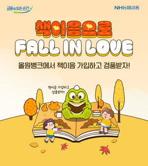 민주신문=이한호 기자|NH농협은행은 가을 독서의 계절을 맞아 오는 21일까지 NH올원뱅크에서 '책이음으로 Fall in Love' 이벤트를 진행한다고 13일 밝혔다.책이음 서비스는 전국 2783개 도서관에서 하나의 이용증으로 도서를 자유롭게 대여할 수 있는 서비스로 지난 5월 출시 이후 꾸준한 호응을 얻으며 가입자 수 3만 명을 돌파했다.이벤트 기간 동안 '책이음 서비스'를 가입하고 응모한 고객 중 추첨을 통해 총 500명에게 교보문고 북커버, 아메리카노 기프티콘을 증정한다.NH농협은행 관계자는 "책을 사랑하는 고객들과 함께 독서의